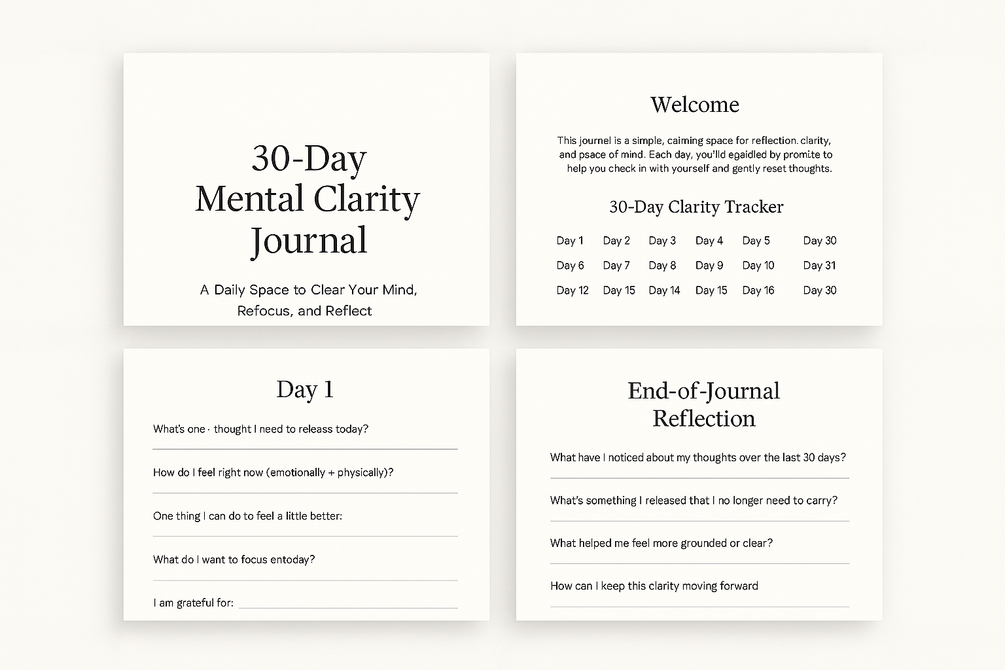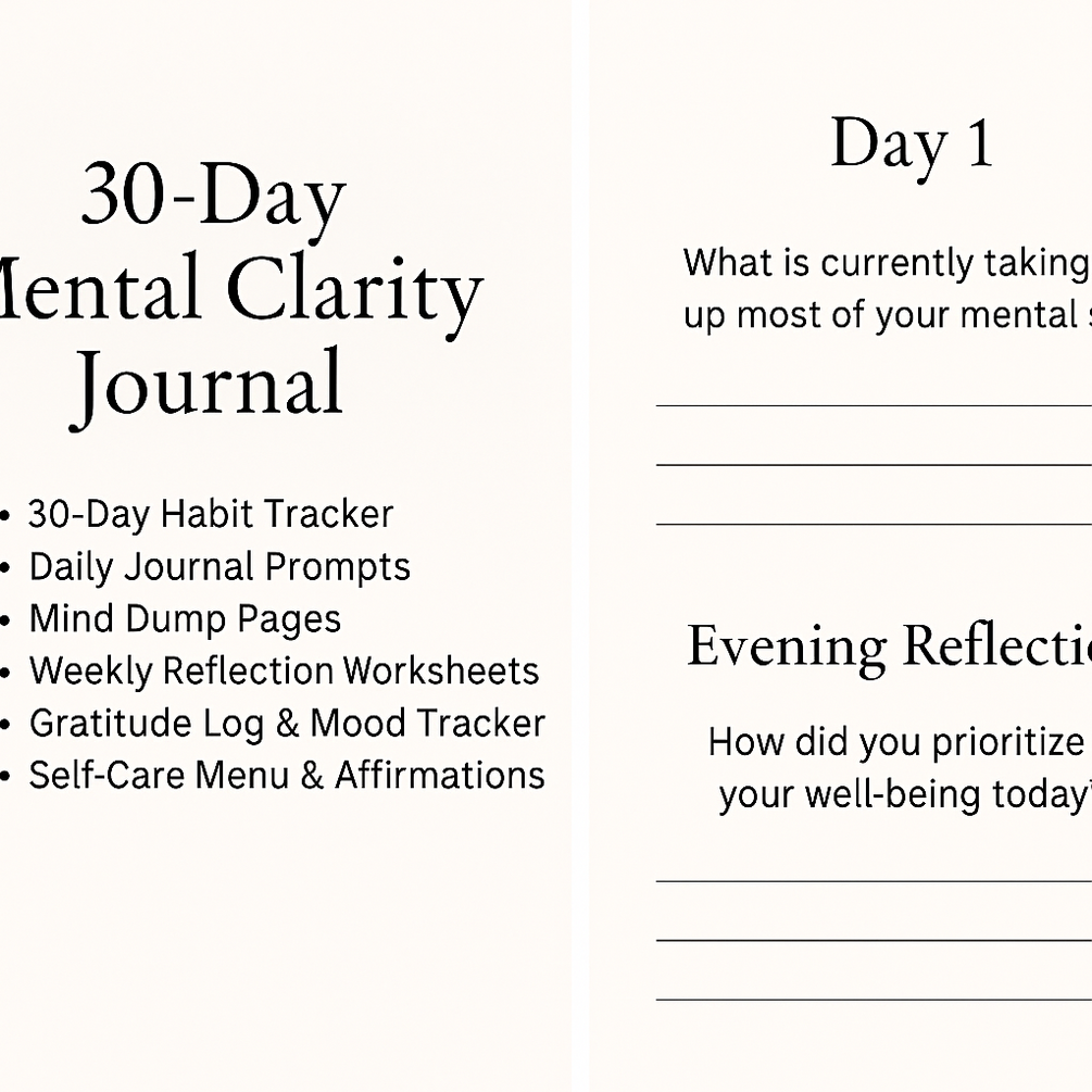 A 30-day guided journal to help you quiet your mind and gain mental clarity.